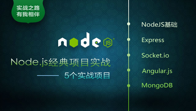在线完成5个经典NodeJS项目,高强度项目训练学习NodeJS开发。涵盖NodeJS基础,Express框架,socket.io,Angular.js,Redis,MongoDB等知识。
